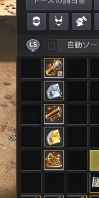 必要なアイテムが全部そろえば、バッグ内調合で作れます。